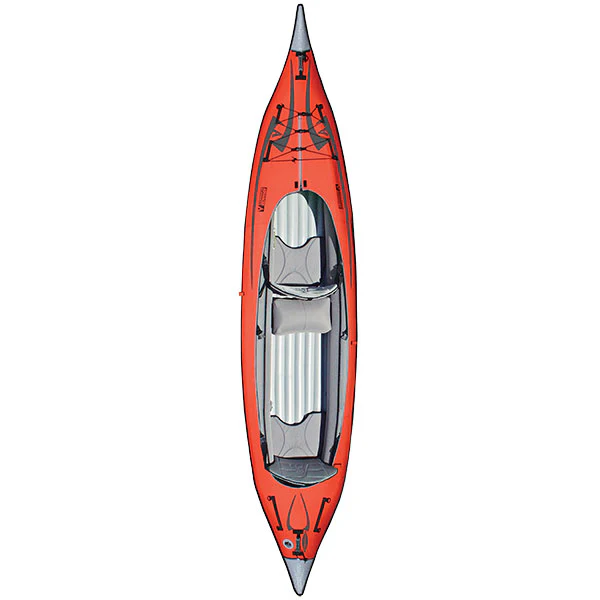 The AdvancedFrame Convertible is a premium hybrid inflatable kayak that aims to combine the portability and convenience of an inflatable with many of the performance features of rigid kayaks. It allows paddling in solo or tandem configuration, supports optional decks (to convert to closed-deck style), has strong tracking features via built-in ribs & skeg/fin, and is built for durability and versatility.