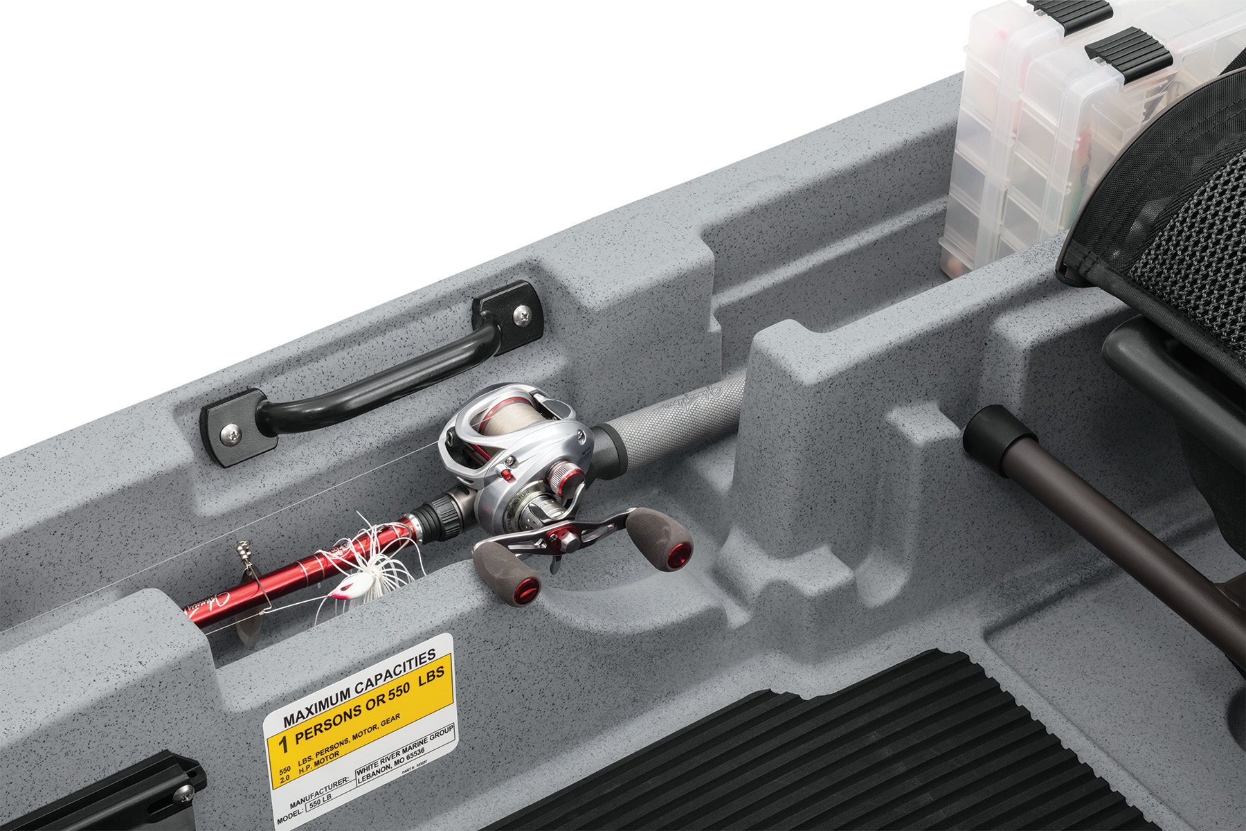Accessory Rails: Four 16″ gunnel-mounted tracks for customization with fishfinders, rod holders, and other accessories.