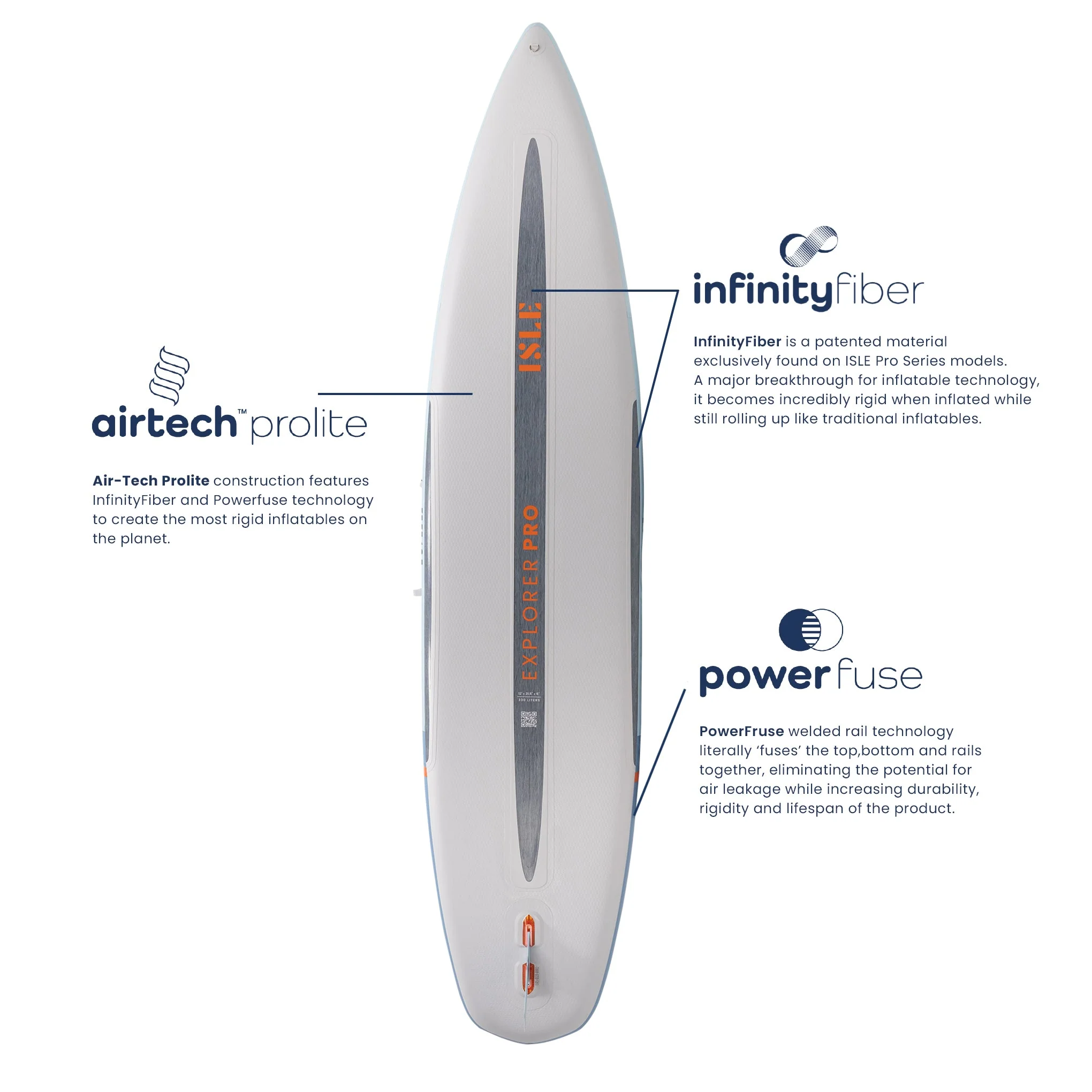 Inflatable Hardboard Performance: ISLE’s proprietary InfinityFiber™ stringers embedded throughout significantly increase rigidity—up to 200-300% more rigid than standard iSUPs, virtually eliminating the “taco effect.”