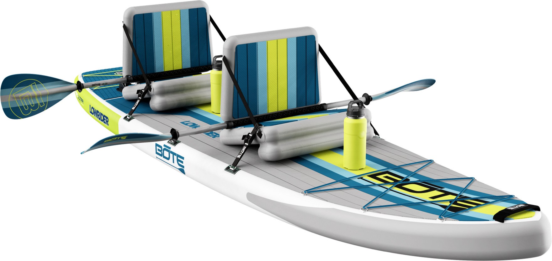 The BOTE LowRider Aero 11′6″ Tandem Inflatable SUP/Kayak Hybrid is a premium, versatile, high-capacity board for those who want flexibility: the ability to sup, kayak, paddle solo or tandem, carry gear, entertain passengers, or do recreational exploration. Its strongest assets are its stability and the fact that it comes as an almost all-inclusive kit.