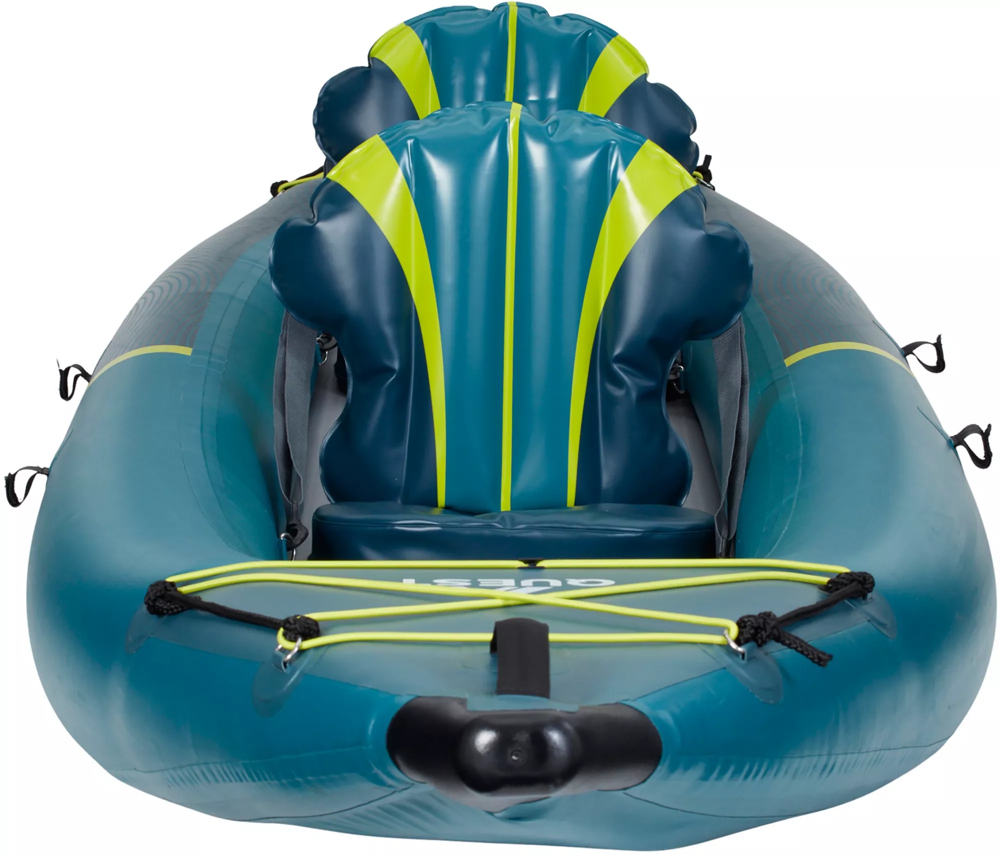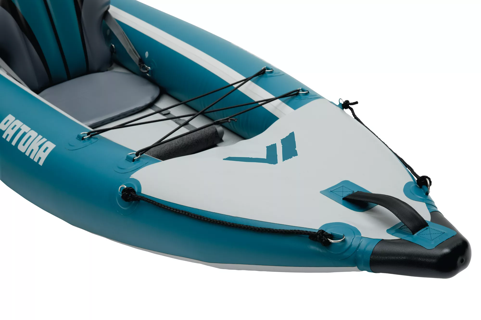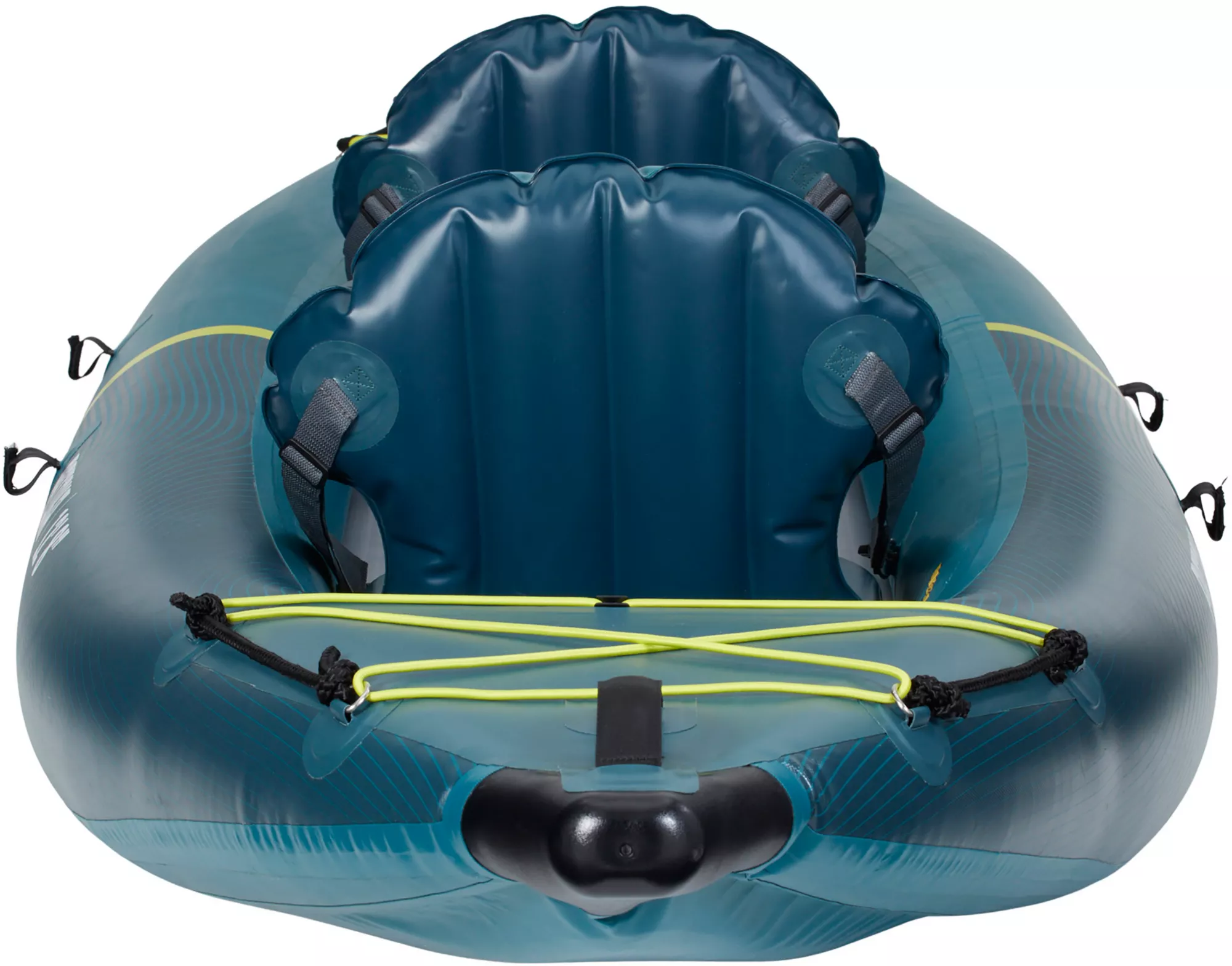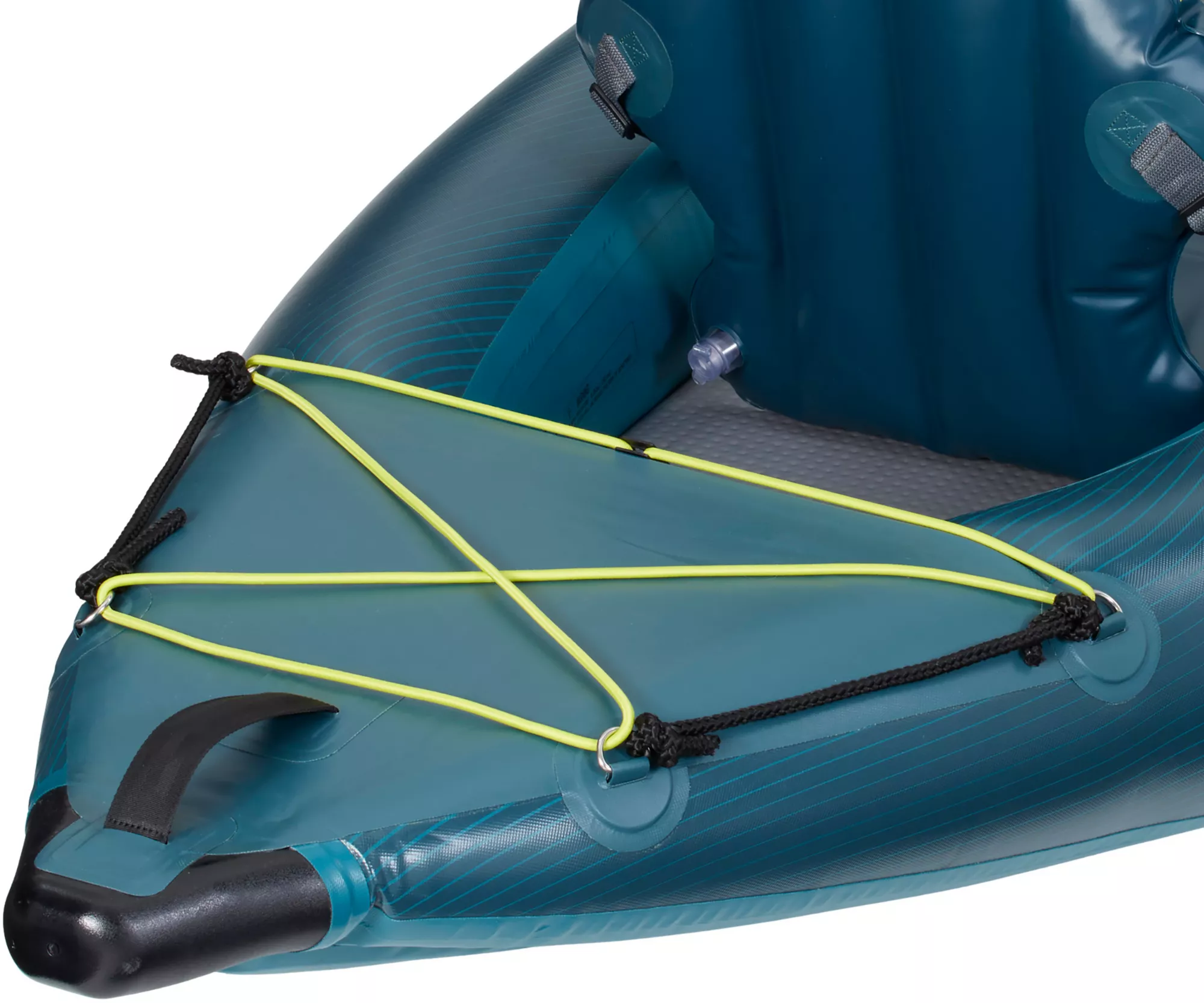 Safety/comfort features: Pressure relief safety valves to avoid over‐inflation; nose & tail covers to help block splash; deck bungees for securing gear.