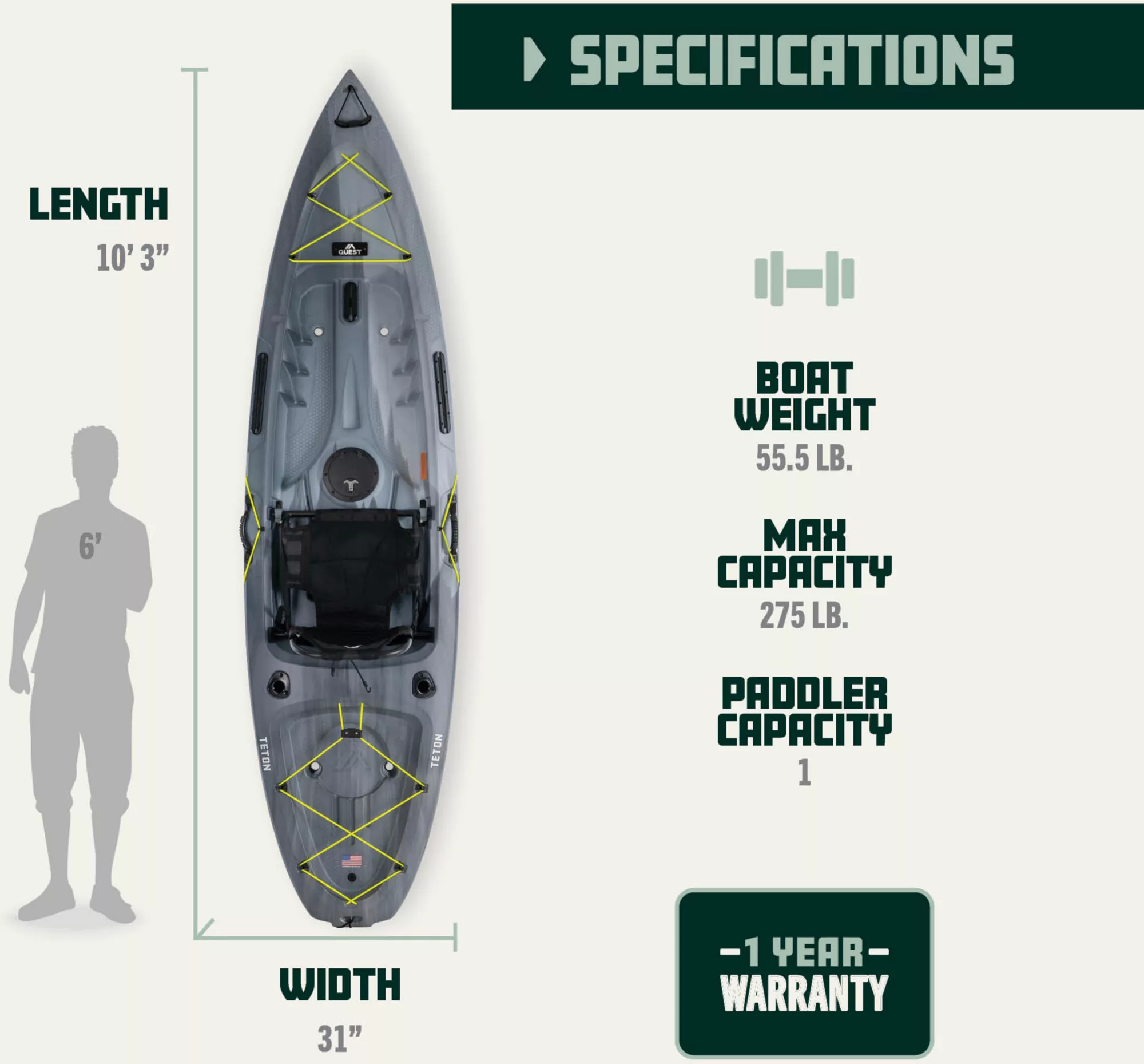 Overall, the Quest Teton 100 Kayak offers excellent value for those seeking a reliable and easy-to-use kayak for recreational paddling and light fishing. Its combination of stability, comfort, and affordability makes it a strong contender in its class.