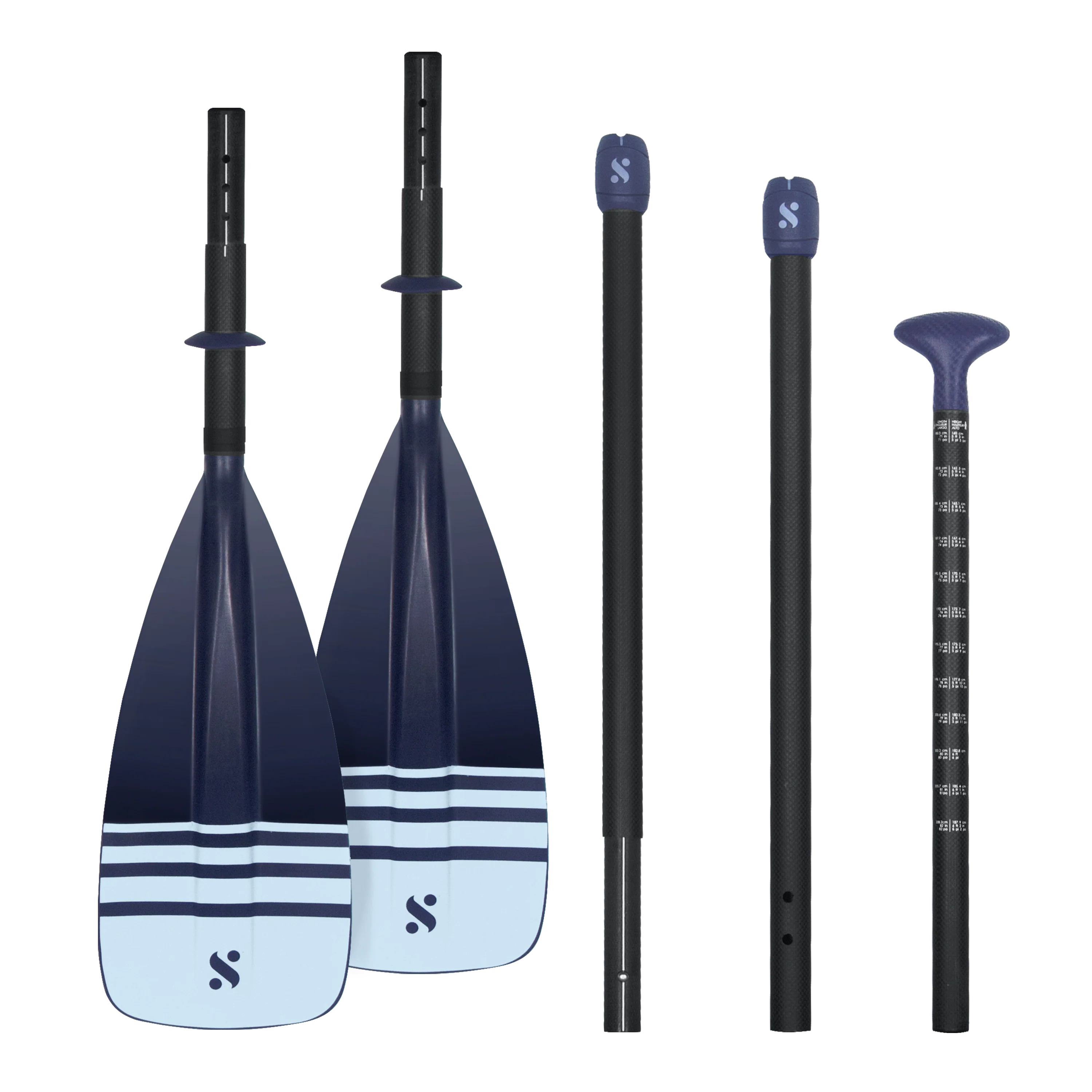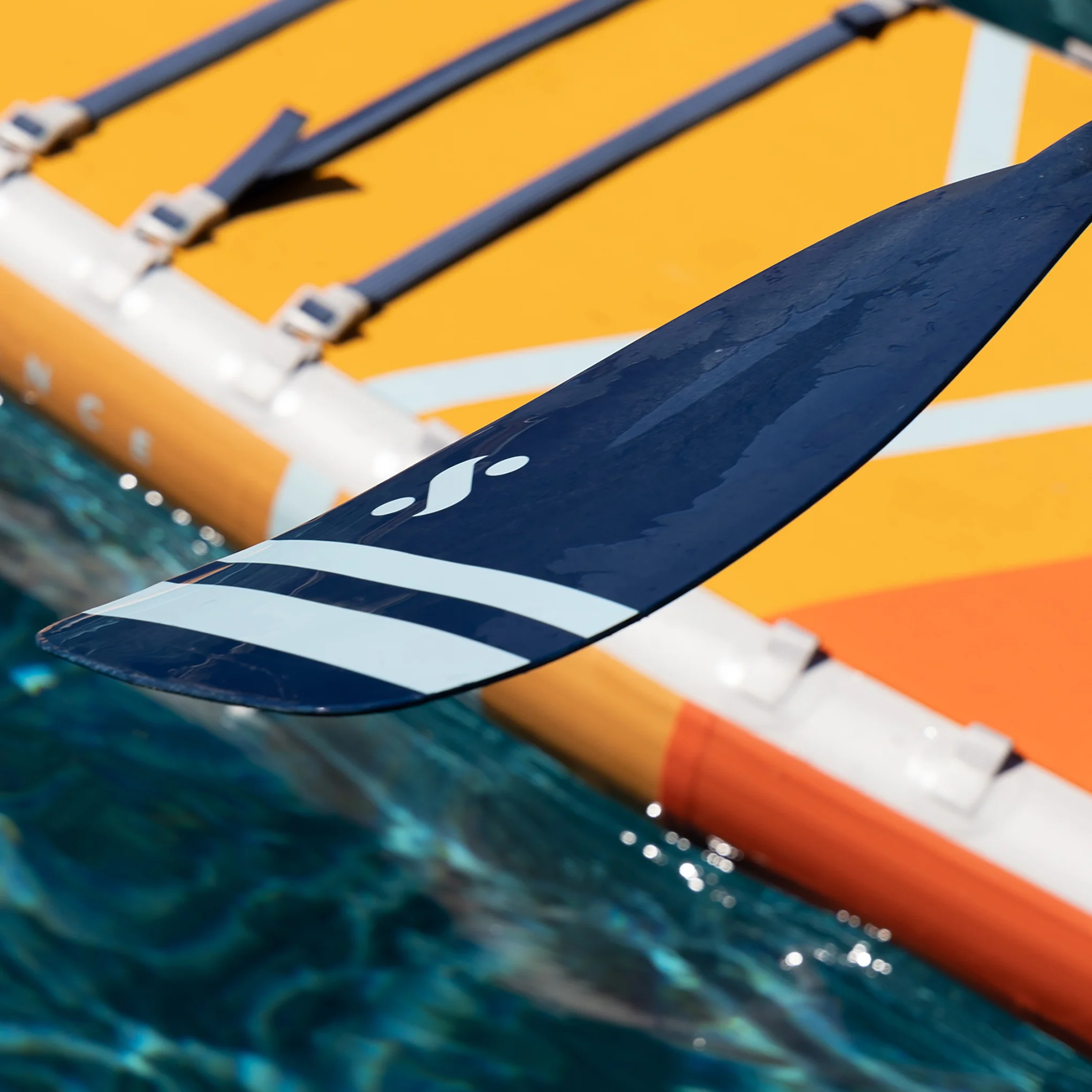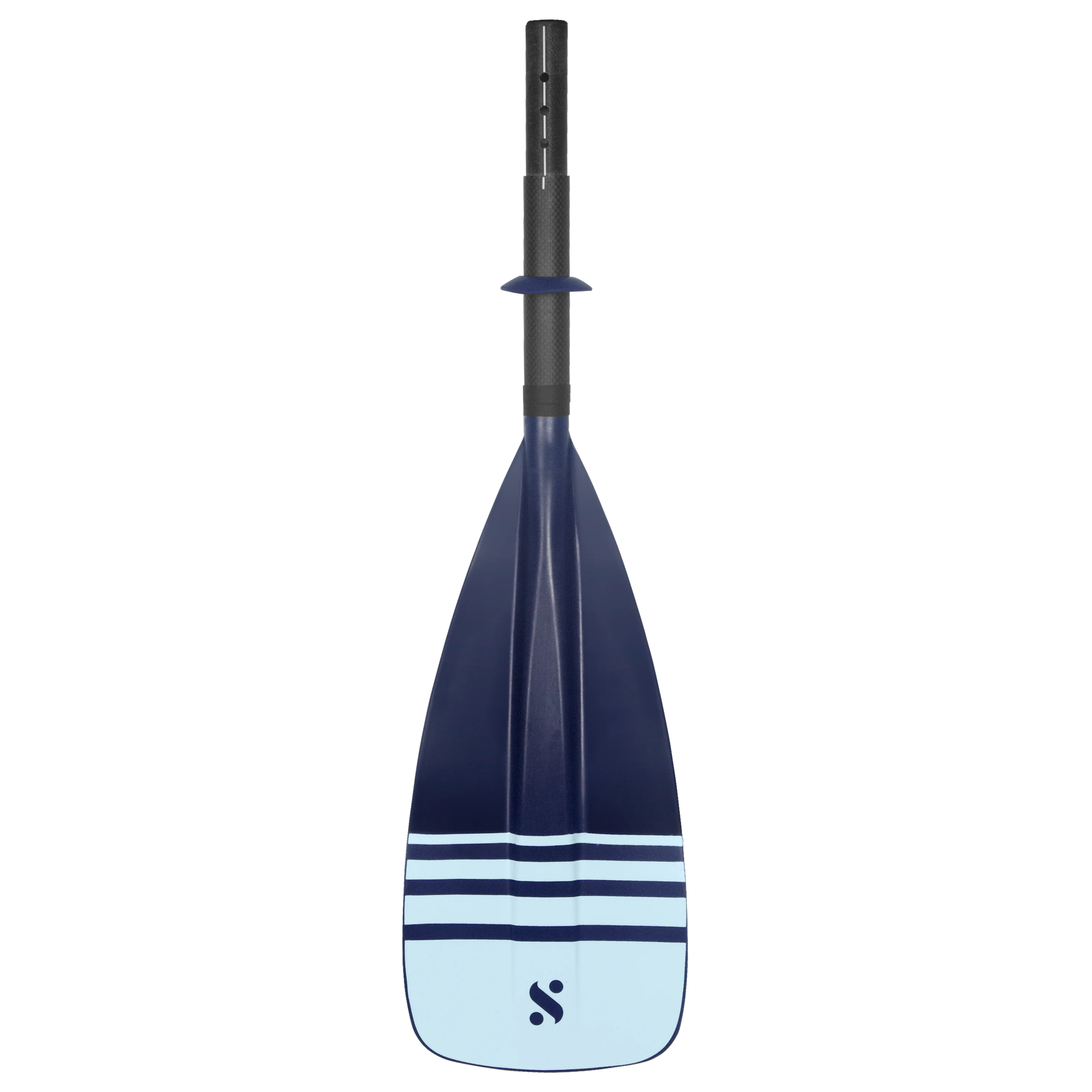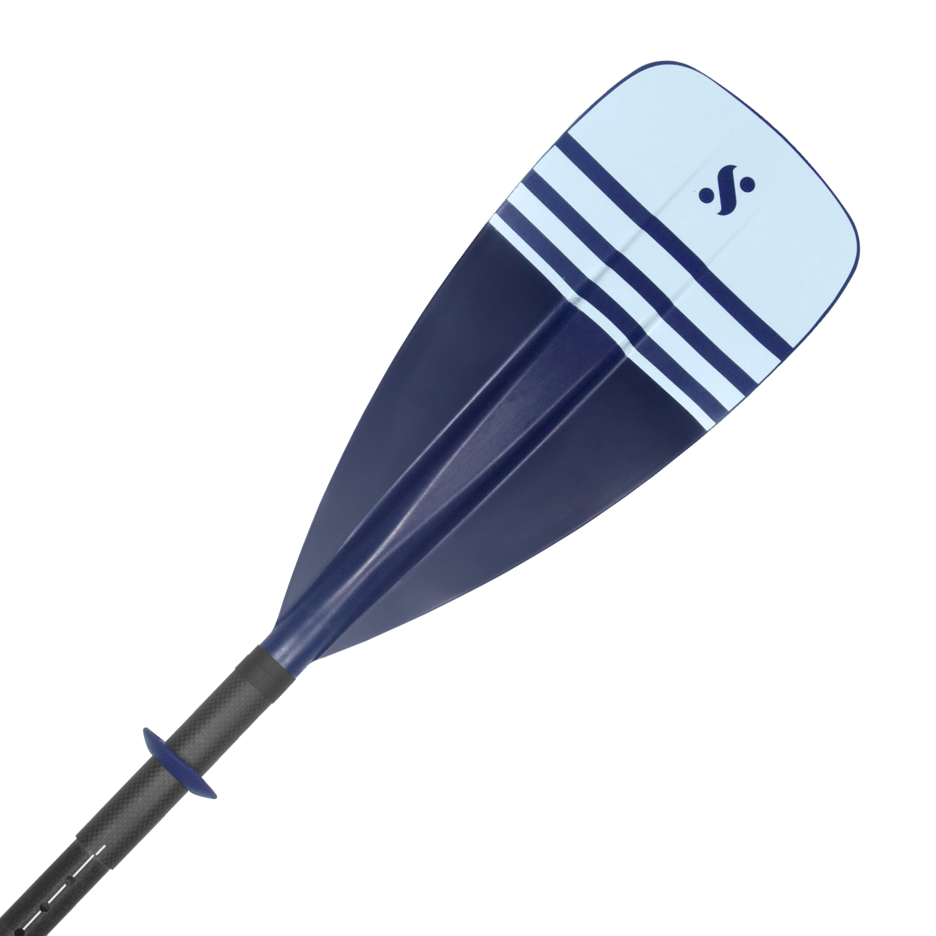 Built with a carbon fiber shaft and nylon/SUP handle, this paddle features a symmetrical design—so either end can serve as the handle or blade, allowing seamless conversion to kayak mode with the addition of an extra blade. -