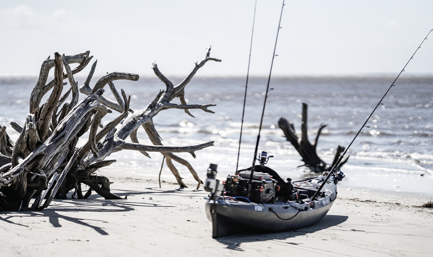 Flush rod holders (front & rear). Bow paddle park, paddle leashes, and side paddle parks to keep paddle secure when hands are full.